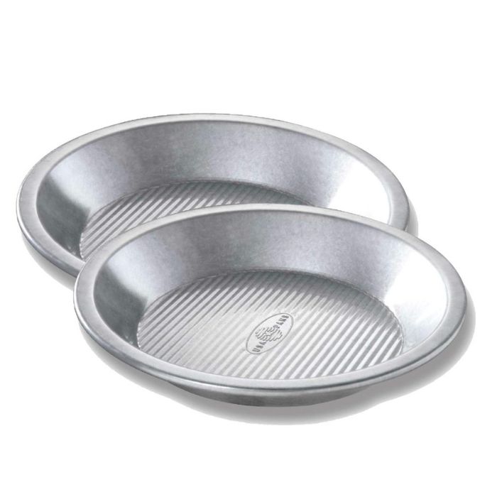 - Each 9-inch pie pan is made of commercial grade and heavy gauge aluminized steel; Set of 2 pans.